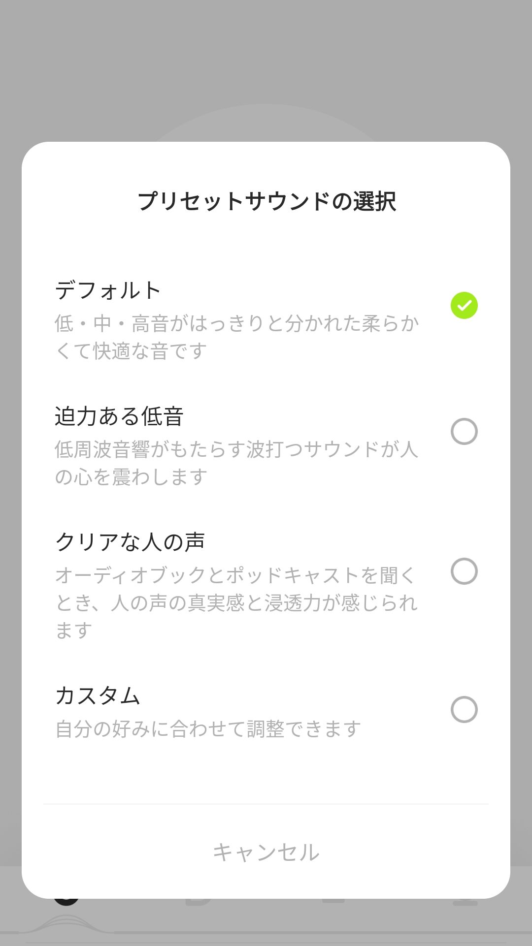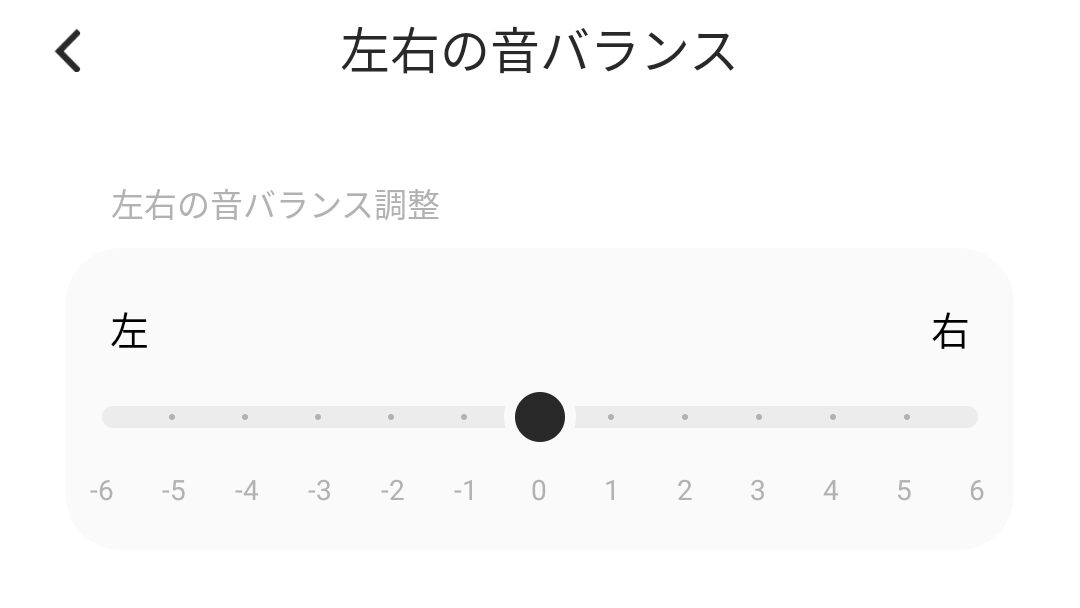 イコライザー機能はデフォルトを含む設定済みのプリセット3種類と、自分で細かく調整可能なカスタムイコライザーで音質傾向を変える事ができます。左右の音量バランスを調整する事も可能です。