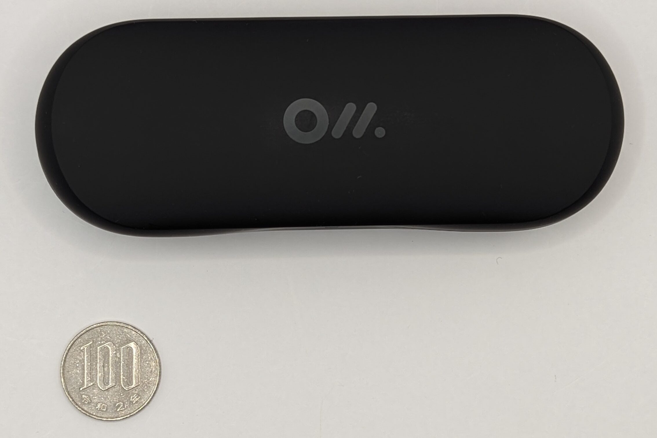充電ケースは平たい楕円形で眼鏡ケースのような形状。