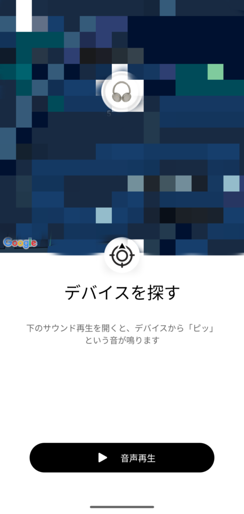 『デバイスを探す』機能ではヘッドホン本体からアラーム音を鳴らすだけでなく、最後に接続が切れた場所を地図表示してくれるので紛失した際に格段に見つけやすくなります。Googleマップベースの立体的な地図で非常に見やすいです。