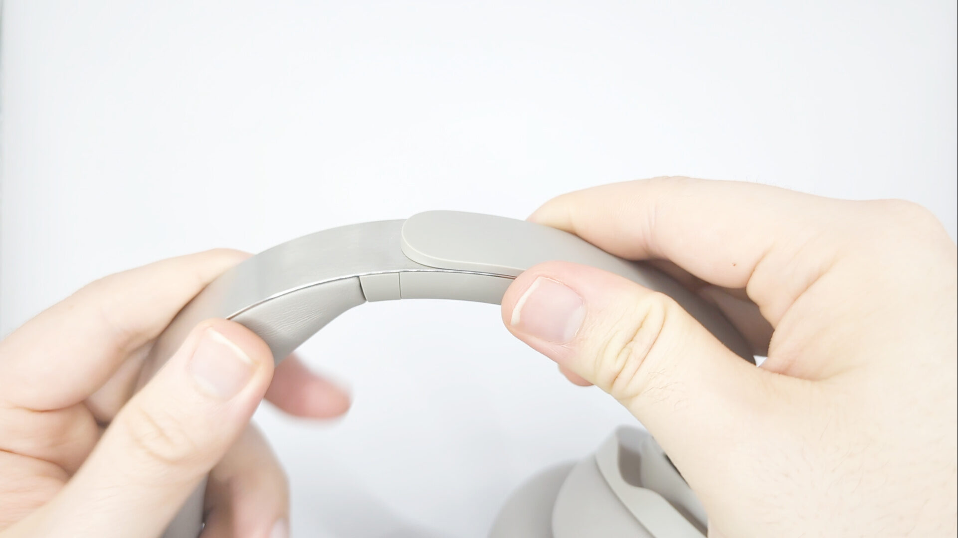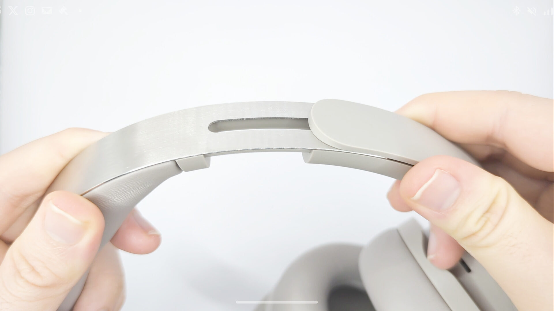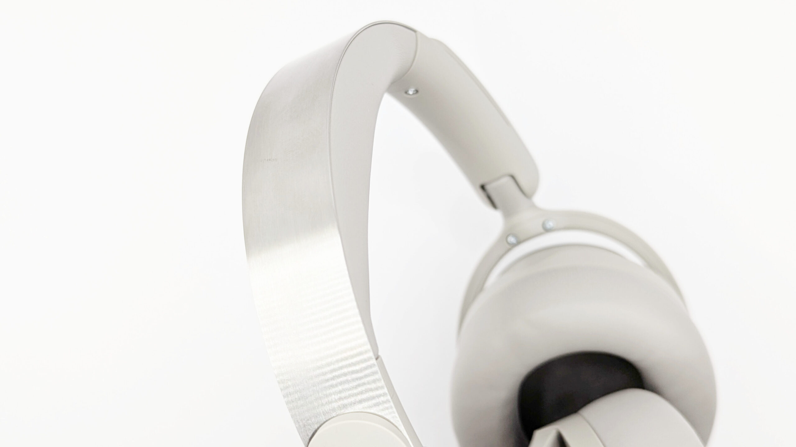 多くのエントリー帯製品のヘッドバンド周りはプラスチック素材や合皮で覆われているのですが、ここが意外とハイエンドモデルとは素材感やビルドクオリティに差が出て見た目のチープさを感じさせてしまう場所で、そこをあえて露出させる事でデザイン性を高めている、のかもしれません。