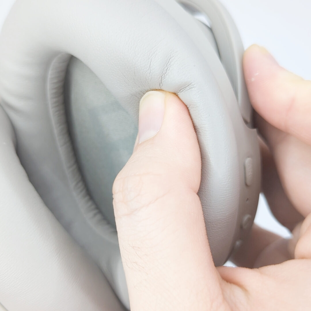 イヤーパッドとヘッドパッドにはおそらくプロテインレザーと思われる素材が採用されており質感・肌触り共に良いです。イヤーパッドクッションは厚みがあり低反発で心地良いです。