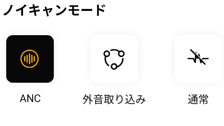 ノイキャンモードは5種類用意されており、状況や好みに応じて使い分ける事ができます。