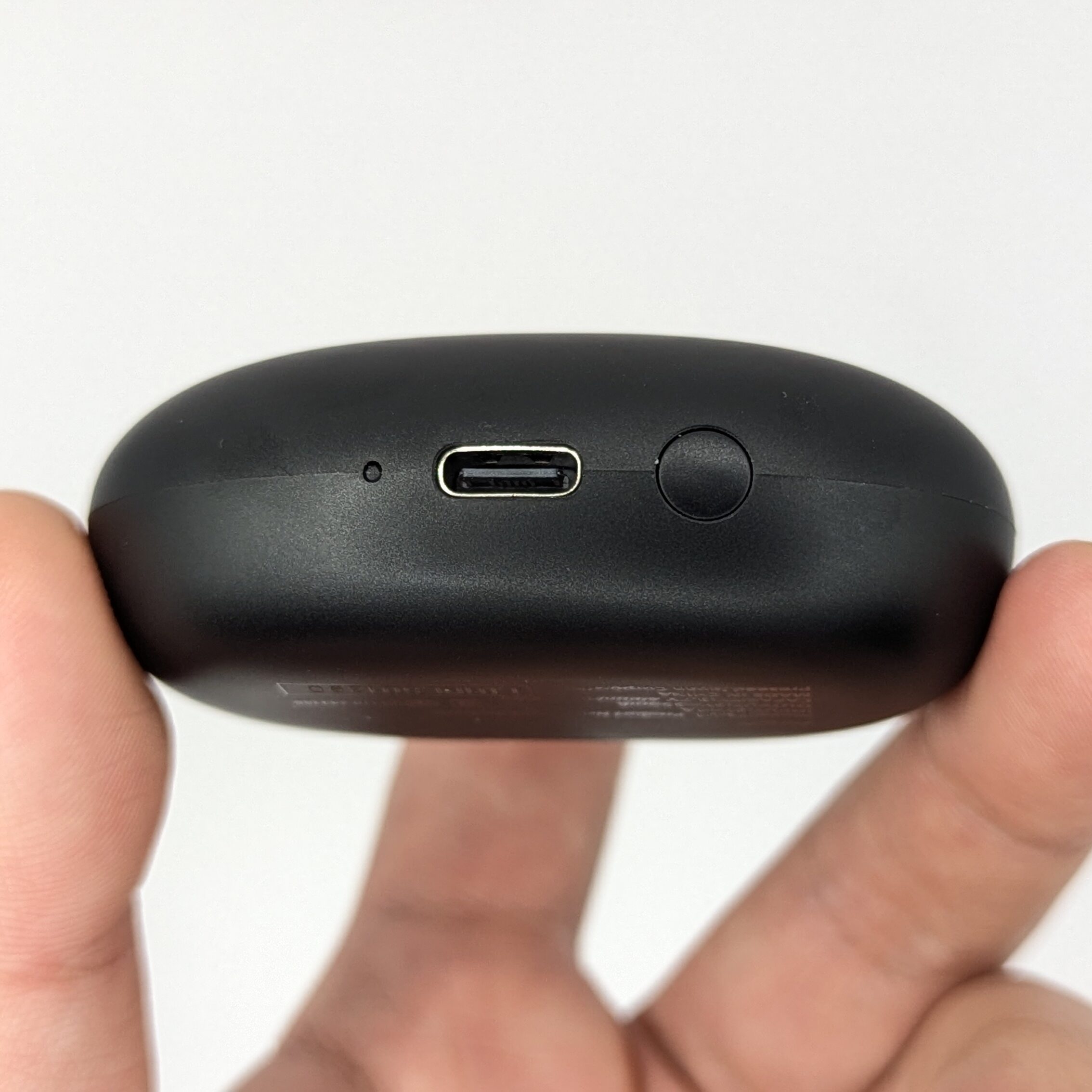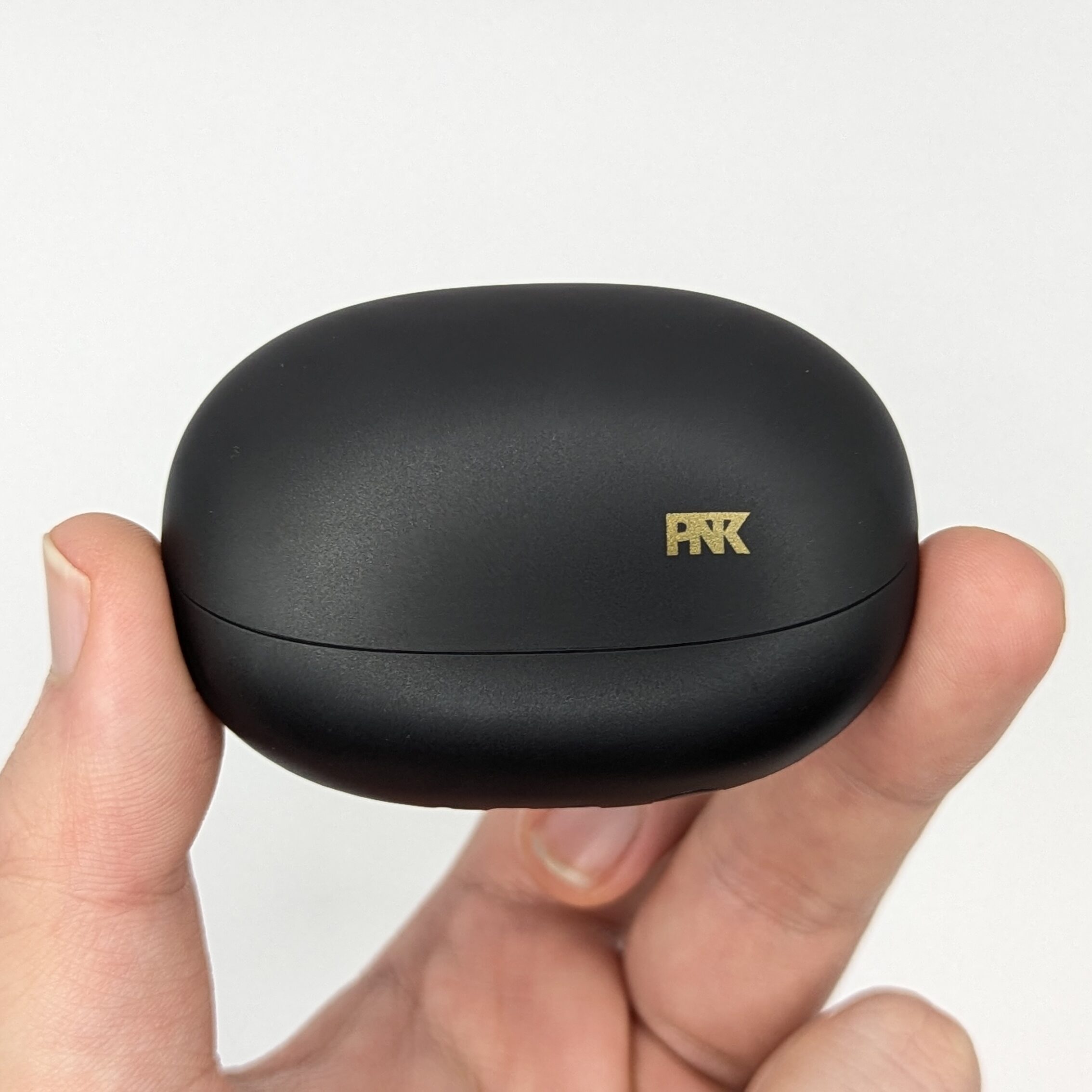 充電ケースは卵型の丸みを帯びたコンパクトデザイン。