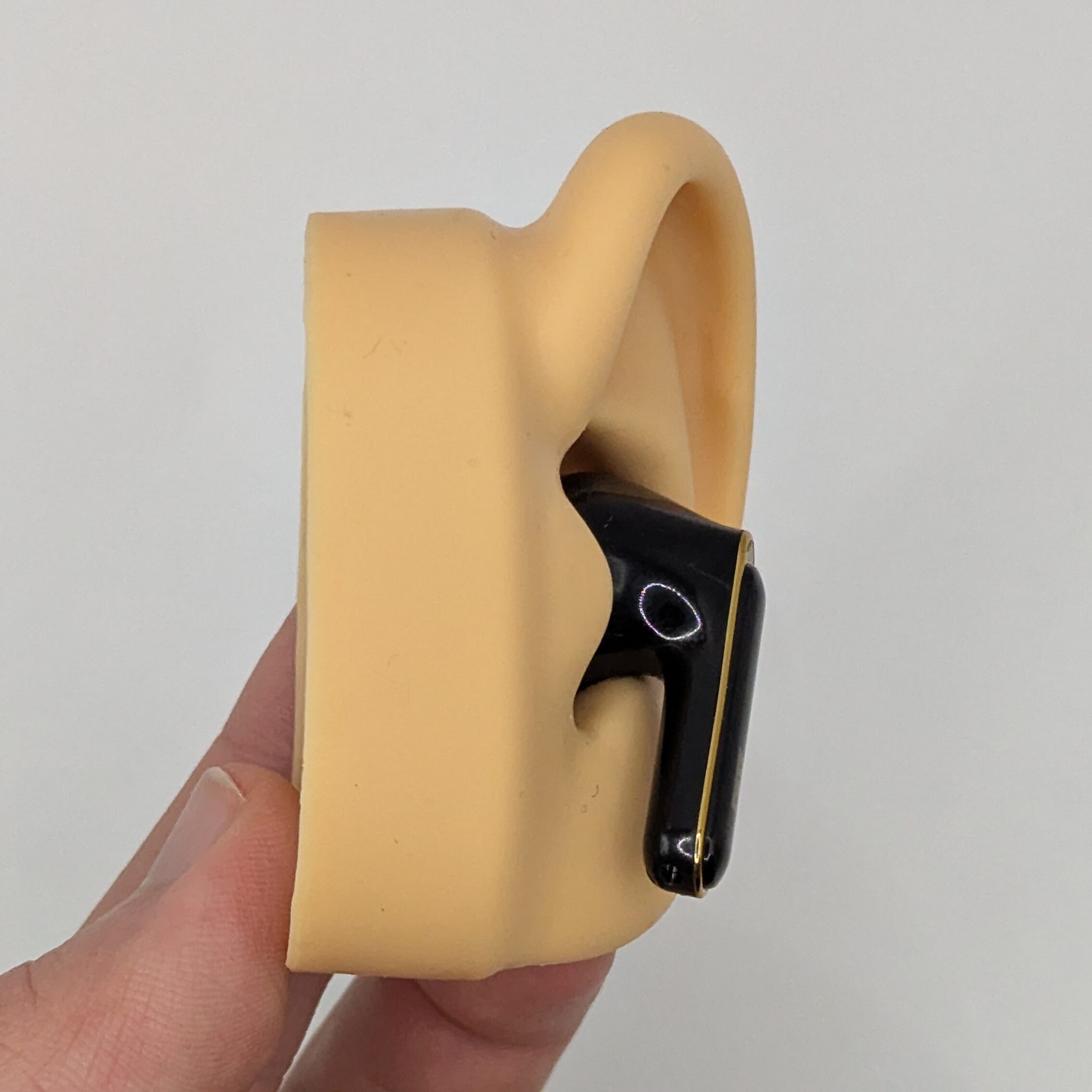 耳に入る部分はやや大きめの設計ですが、装着していくうちに馴染みやすい形状です。