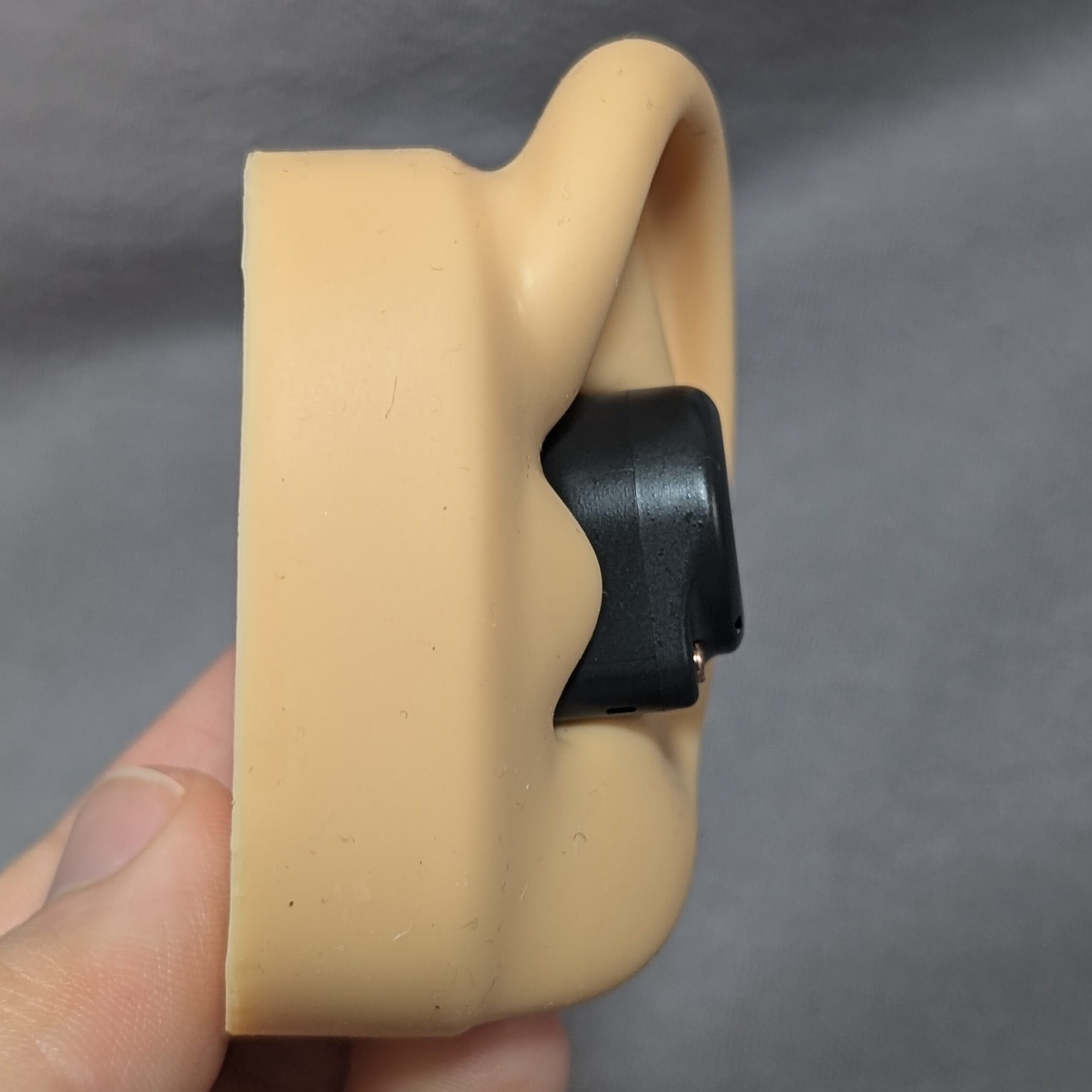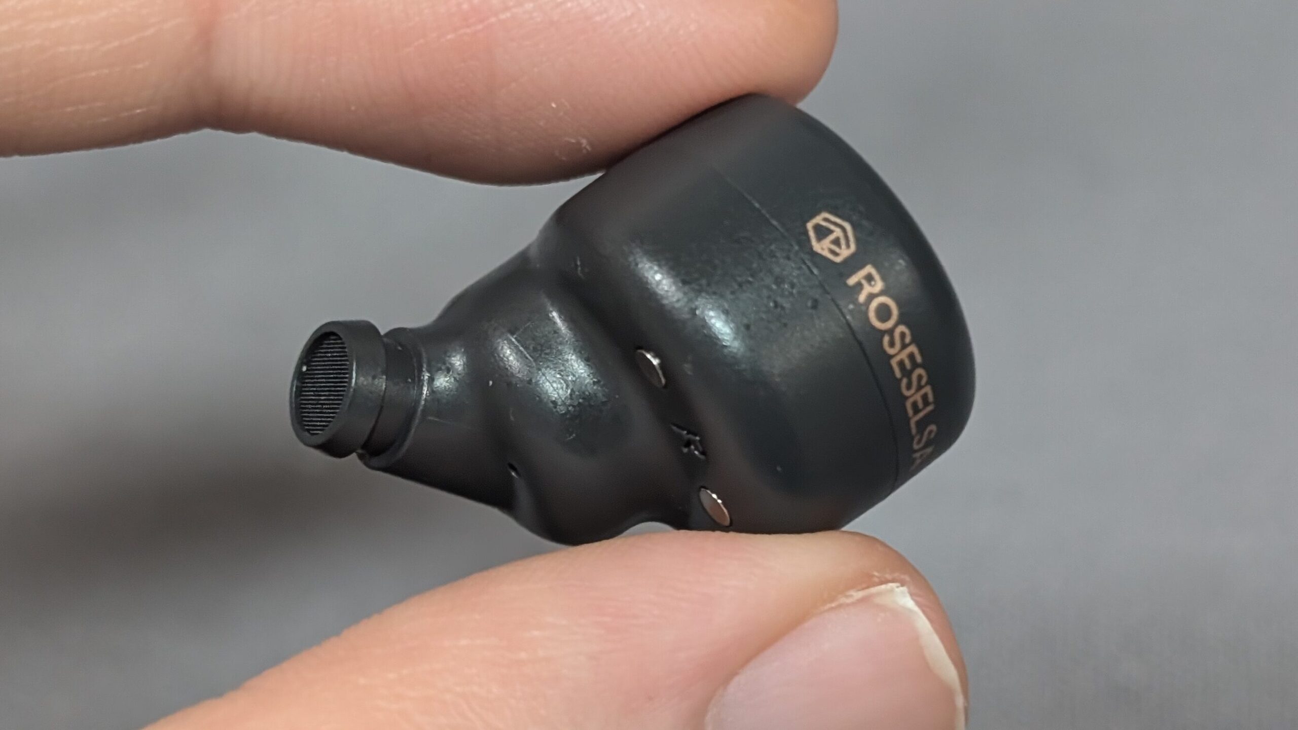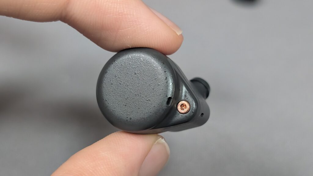 ノズルは耳道に合わせて斜めに設計されています。ノズルは口径は平均的で短く、イヤーピースをカスタムする場合はワイヤレス向けのものが合いそうです。
