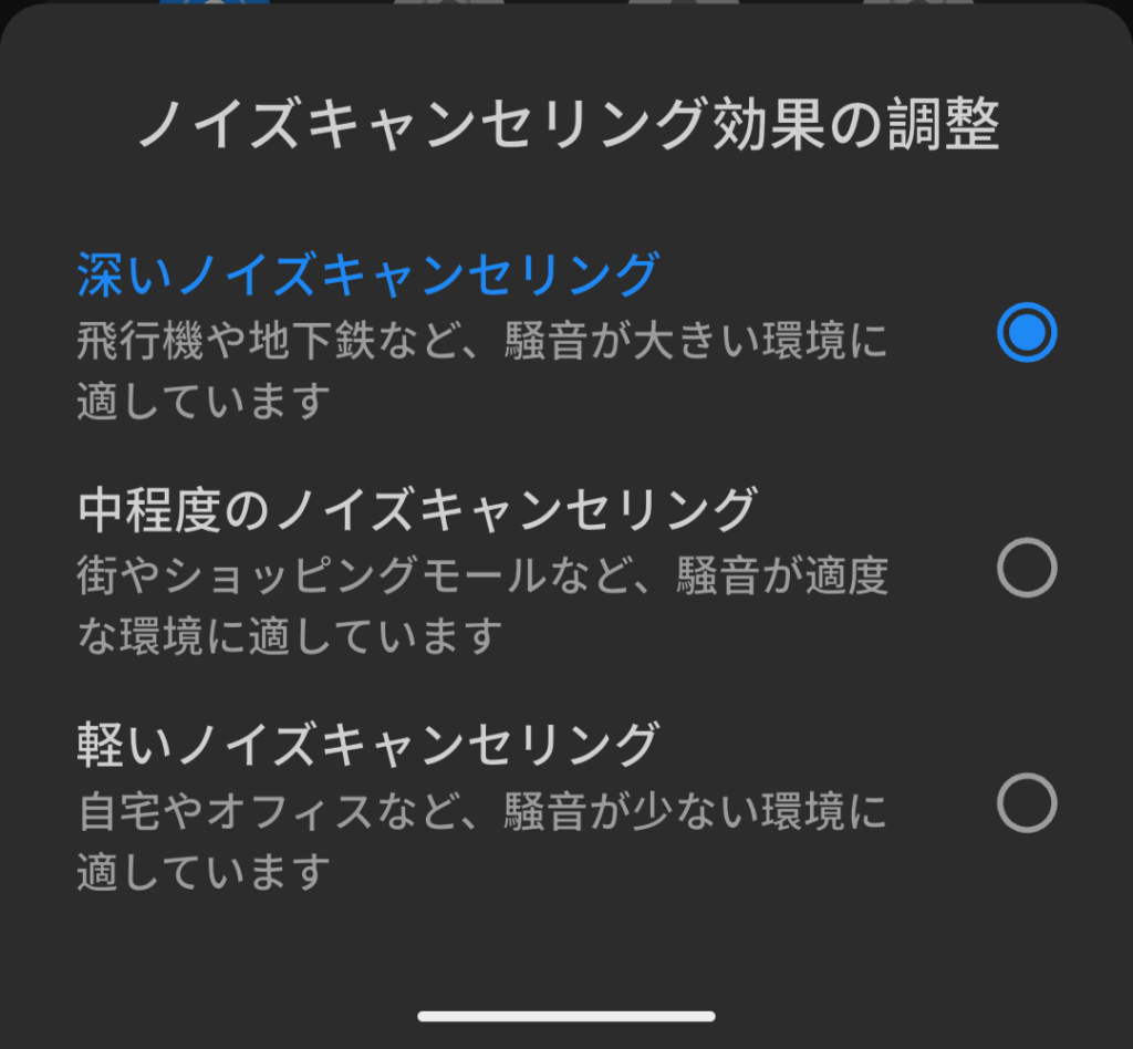 ANC性能自体の高さに加え、フォームタイプイヤーピースによる物理的な遮音性も相まって、ミドルクラス以上・ハイエンドクラスに迫るほどの強力なノイズキャンセリングと感じました。