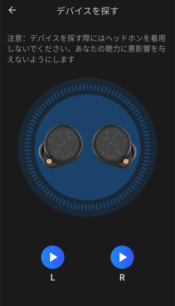 - デバイスを探す:イヤホンからアラームを鳴らして紛失時に発見しやすくする機能