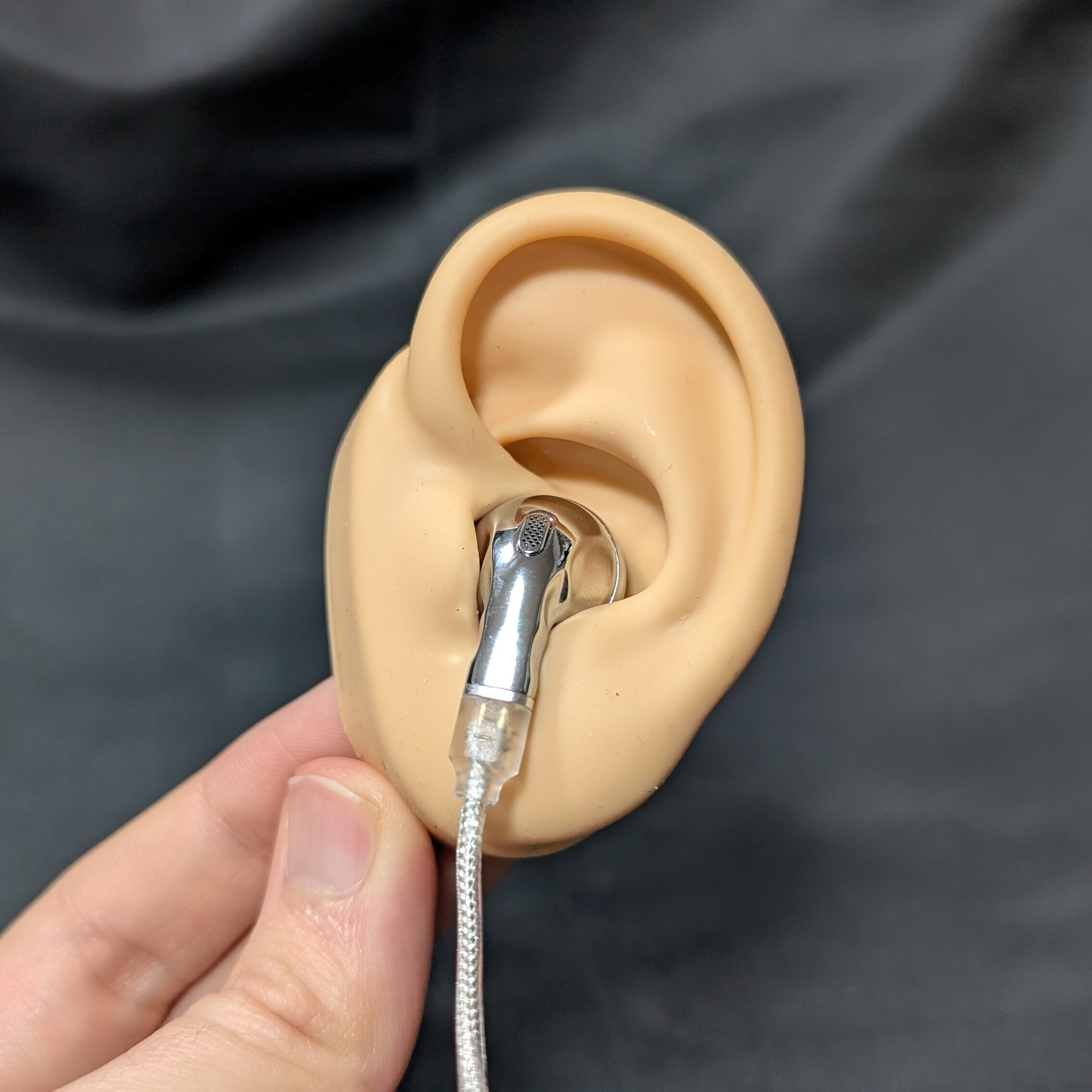 イントラコンカ型のためイヤーフック加工はなく、ケーブルはストレートタイプです。
