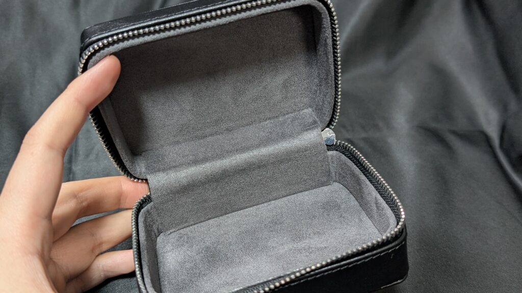 さらに、レザー調ケースは内側がベロア風素材になっており、イヤホンを傷つけにくい設計です。
